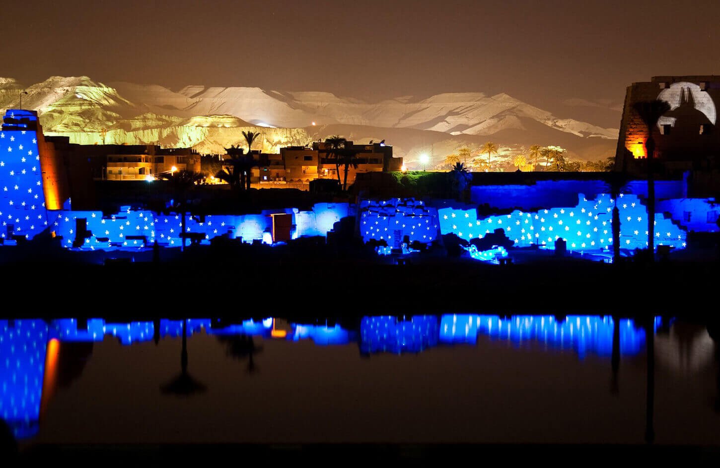 Dans la seconde partie du spectacle, installez-vous confortablement près du lac sacré, où l’ensemble du temple est baigné dans un spectacle de lumière à couper le souffle. Cette expérience visuellement époustouflante convient à tous les âges et constitue une visite incontournable à Louxor.